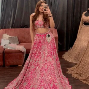 The designer blouse for lehenga included with this outfit complements the lehenga with its flattering cut and detailed embroidery, setting a new standard in lehenga blouse design. Whether you’re looking for a lehenga for wedding, lehenga dress for women, or a party wear lehenga for women, this versatile piece fits the brief. It’s also a fresh pick for the latest designer lehenga trends, making it a great option for young girls searching for a designer lehenga for girls or girl lehenga choli for festive occasions.
